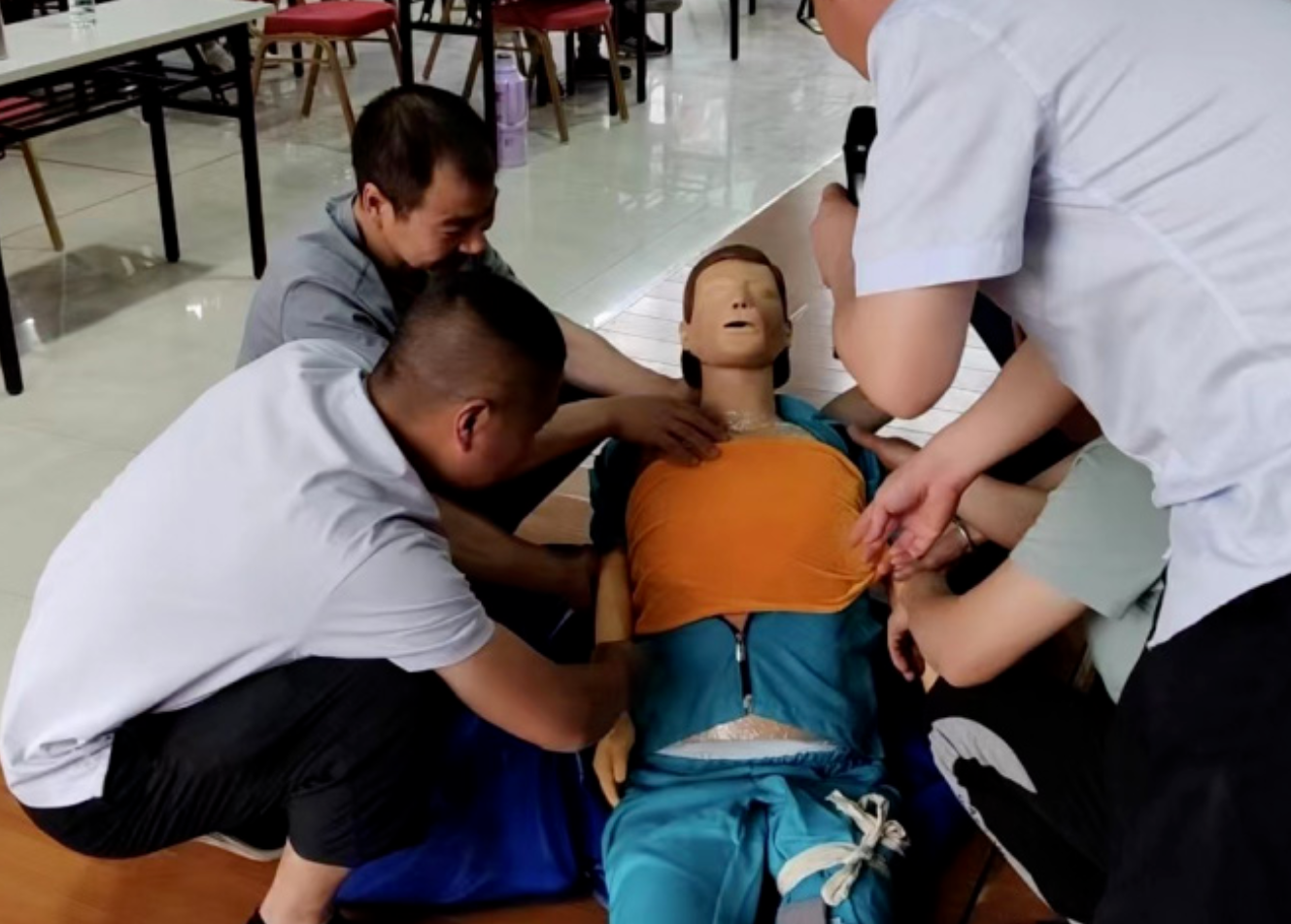 培訓(xùn)內(nèi)容包括綜合應(yīng)急救援演練及采礦地質(zhì)水文知識(shí)、片幫冒頂事故的情景及應(yīng)對(duì)措施、應(yīng)急救援演練中包扎和搬運(yùn)的方法等。