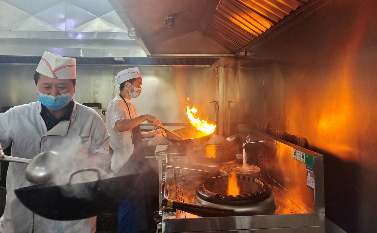 在烹飪組比賽環(huán)節(jié),放油、下料、顛鍋、翻炒動作一氣呵成,廚師們在灶臺前揮灑激情,展現(xiàn)技藝,一道道美味佳肴不斷在他們手中呈現(xiàn)。