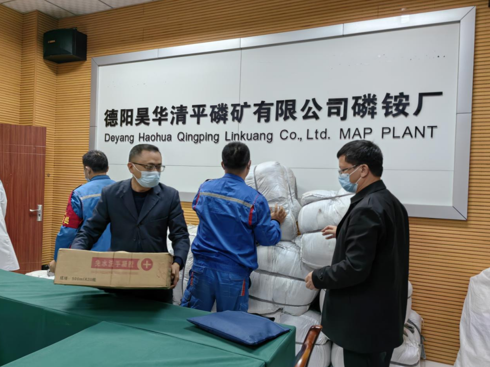 指揮部組織人員緊急采購(gòu)防疫物資并及時(shí)分發(fā),共采購(gòu)口罩10萬(wàn)支、消毒液200瓶、防護(hù)服及面罩120套(供礦業(yè)分公司、磷銨分廠、商務(wù)部貨場(chǎng)使用),還為廠區(qū)留守職工采購(gòu)了行軍床、睡袋、棉絮、洗漱用品等生活物資300套。