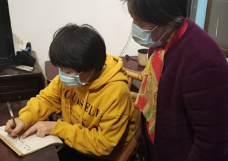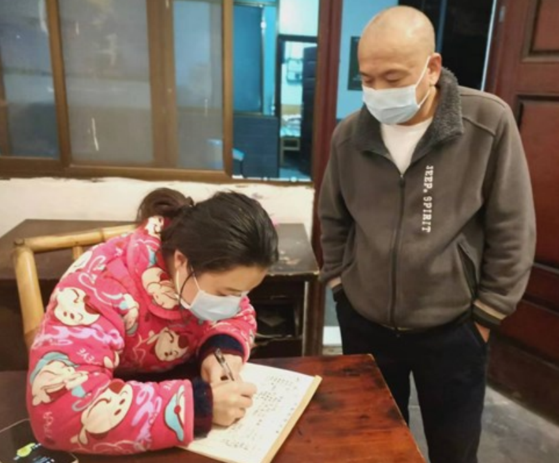 青年志愿者為家屬區(qū)職工及家屬登記每日所需生活物資