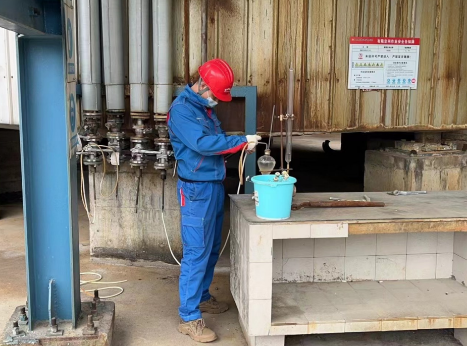 因疫情防控原因,分廠生產(chǎn)技術(shù)科化驗(yàn)人員僅剩4名職工駐廠,在人手嚴(yán)重不足的情況下,他們依然堅(jiān)守崗位,堅(jiān)持完成硫磺、磷酸的中控指標(biāo)的檢測(cè),為車間生產(chǎn)提供準(zhǔn)確、及時(shí)的數(shù)據(jù),有力保障了生產(chǎn)。