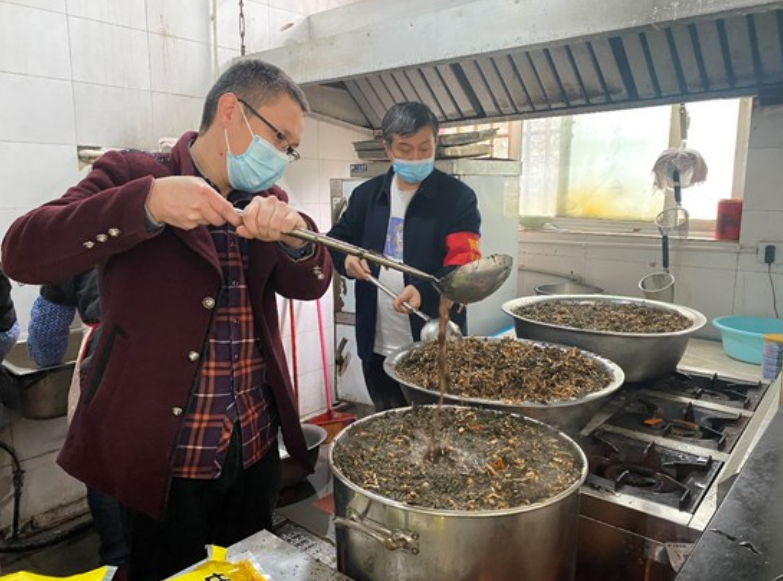 11月23日,清平磷礦黨政辦公室為礦業(yè)分公司配送了新冠預(yù)防中藥藥材。安全環(huán)??谱蠛街?、田華犧牲了午休時(shí)間,在拿到藥材后,洗鍋、燒水、攪拌、過濾、裝桶一刻都沒閑著。濃濃的中藥香撲鼻而來,爐子上的大鍋里熱氣騰騰,咕嚕咕嚕正在熬制,左航周拿起工具,把中藥材向下按壓,以保證沒入水面。