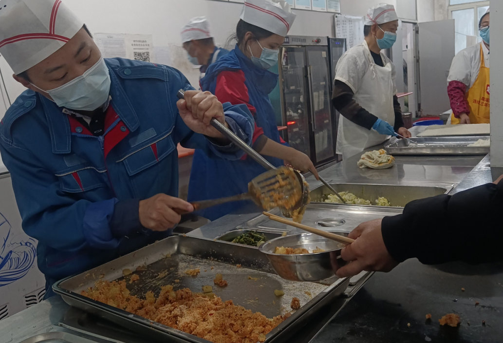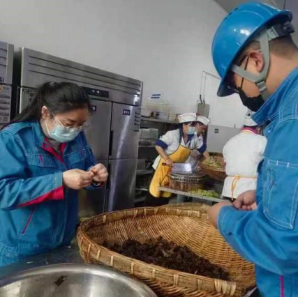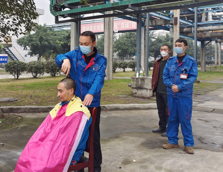 他們有的穿上嚴(yán)實(shí)的防護(hù)服,協(xié)助維持職工核酸檢測隊(duì)伍秩序,并為外來人員、車輛登記掃碼和引導(dǎo)。特別是磷銨分廠每天有上百輛外來物流車輛進(jìn)出,他們輪流值守,無懼風(fēng)雨、嚴(yán)寒和黑夜依然堅(jiān)守在第一線;他們有的利用休息時(shí)間,幫助食堂洗菜、擇菜、切菜和分發(fā)餐品。對于平時(shí)在家里很少進(jìn)廚房的他們也是一次勞動技能鍛煉,從“手忙腳亂”到“眼疾手快”,他們很快掌握了訣竅,為因職工全部留守,工作量倍增的食堂工作人員減輕了不少壓力;有的協(xié)助開展消殺、“一米線”標(biāo)識張貼等工作;還有的職工發(fā)揮特長,義務(wù)為同事們理發(fā)。