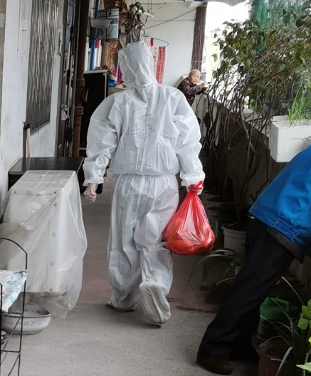她們身材嬌小,卻撐起了半邊天。每天穿著厚實(shí)的防護(hù)服,提著沉重的物資,每爬一層樓都要耗費(fèi)比平時(shí)多幾倍的精力,一趟下來早已汗流浹背,但她們依然繼續(xù)堅(jiān)持完成任務(wù)。當(dāng)脫下防護(hù)服時(shí),雖然氣喘吁吁,汗水都流到了指尖,但她們卻面帶欣慰的笑容,因?yàn)樗齻冎雷约旱母冻霰U狭寺毠ず图覍俚纳?,讓老一輩清磷人看到新一代清磷青年的精氣神和奉獻(xiàn)精神。