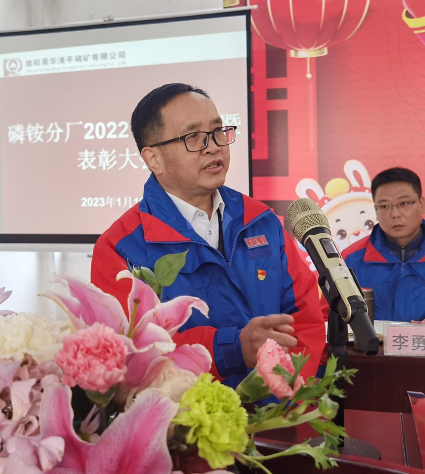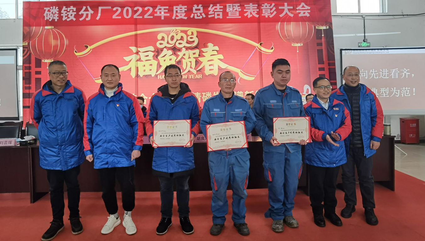 1月16日下午,磷銨分廠召開2022年度工作總結(jié)暨先進表彰大會,舉行了《礦化結(jié)合十年路,清磷發(fā)展譜新篇》——磷銨分廠廠慶十周年暨新春團拜會文藝演出。公司黨委書記、董事長、總經(jīng)理胡良才攜公司領(lǐng)導(dǎo)班子成員及總部機關(guān)部門負(fù)責(zé)人出席了會議。