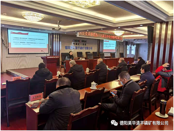 12月17日上午,德陽市國資委系統(tǒng)十九屆五中全會宣講大會(綿竹片區(qū))在德陽昊華清平磷礦有限公司總部B棟6樓會議室召開,國資委系統(tǒng)綿竹片區(qū)四家企業(yè)近百名黨員參加了學(xué)習(xí),大會特邀了德陽市委黨校蘇亮老師進(jìn)行宣講。